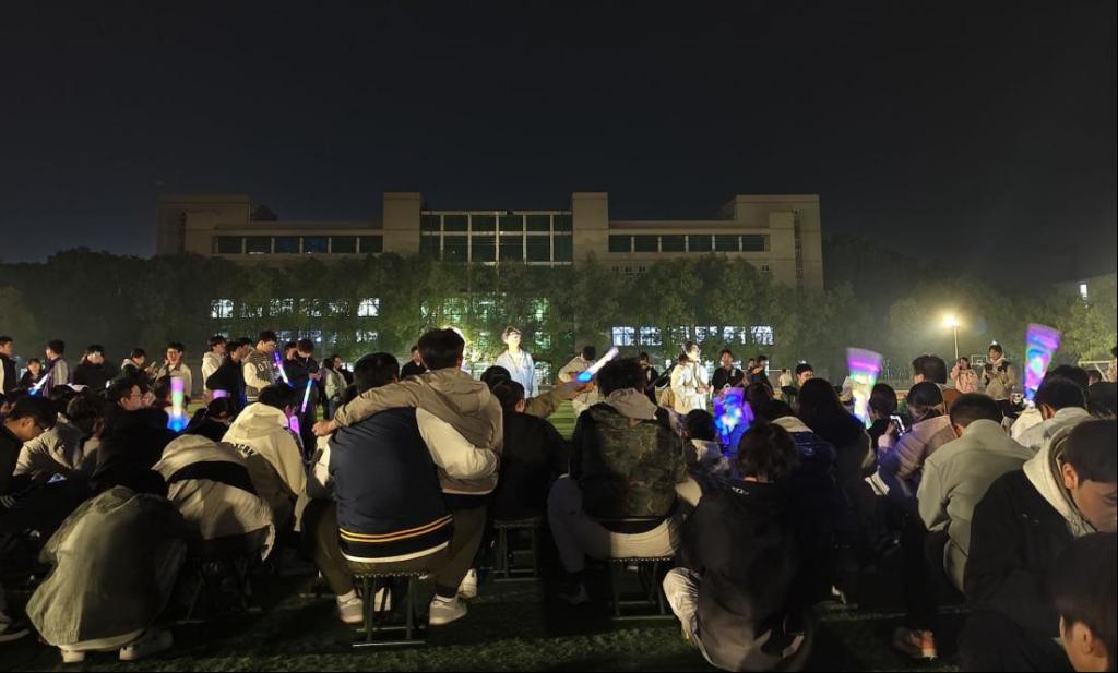 下半场,不晚乐队再度登场,接连献上《光年之外》《手心的蔷薇》等经典曲目,将现场氛围不断推向高潮。音乐会在主唱何云熙带领的全场大合唱《晴天》中步入尾声,熟悉的旋律引发共鸣,荧光闪烁,歌声回荡,为这个秋夜定格下难忘的青春画面。