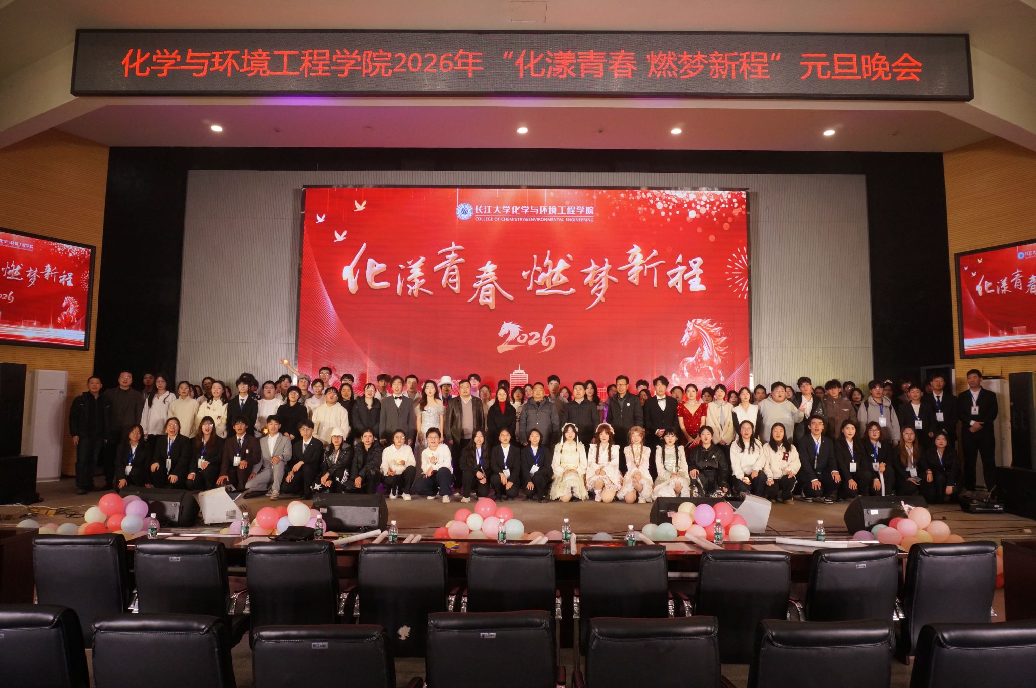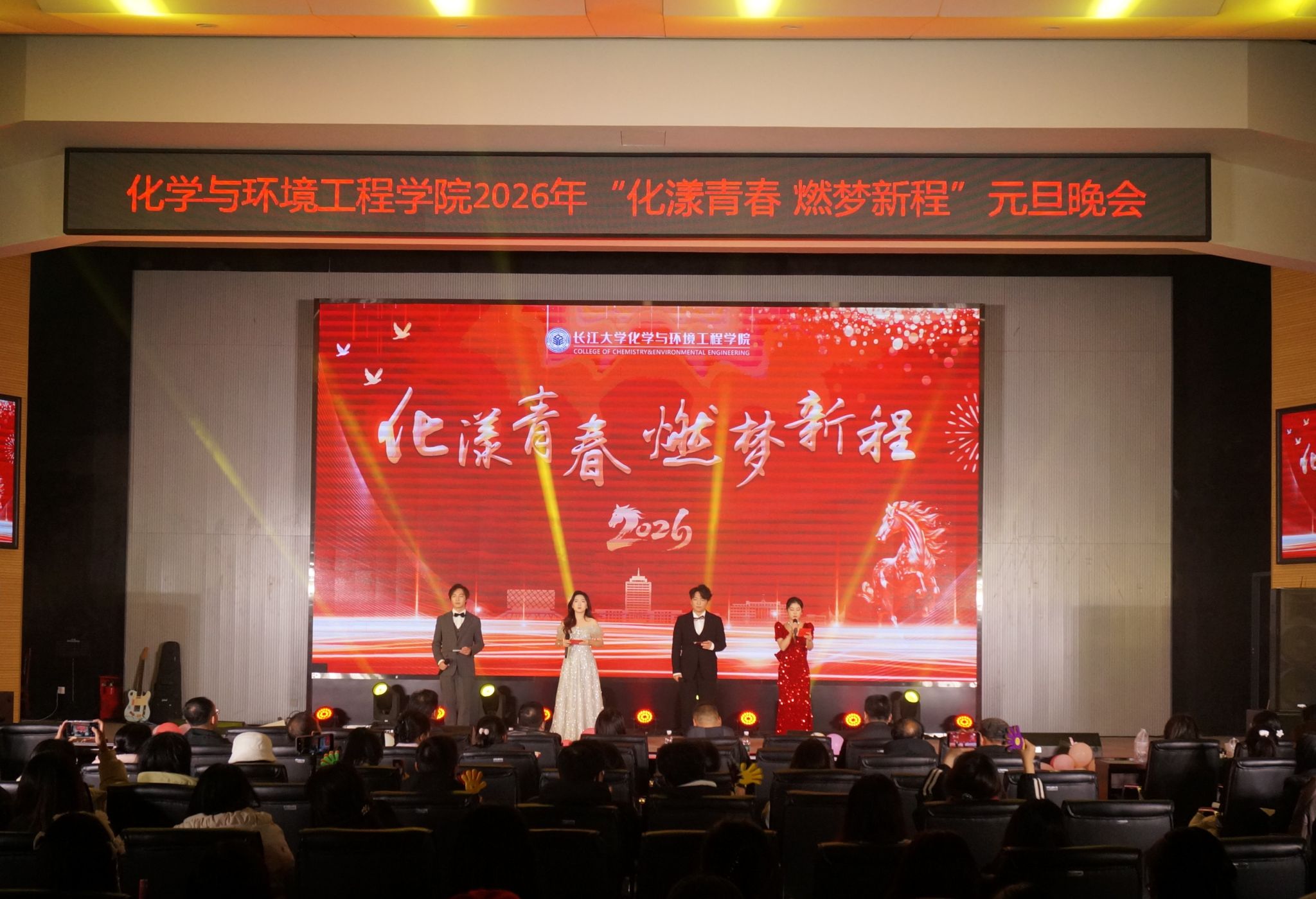 (通讯员 伍吉玥 周学素)岁序更替,华章日新。122719时,情色视频 于西校区农科大楼1058报告厅隆重举办“化漾青春 燃梦新程”2026年元旦晚会。情色视频党委书记王丽,副院长吴爱斌,副院长肖围,党委副书记杨会军,院长助理黄河以及情色视频教师与同学们齐聚一堂共迎新年。本次晚会由晋鑫玥、陈绚、谢辉、张健禹主持。